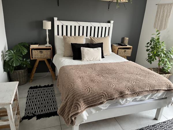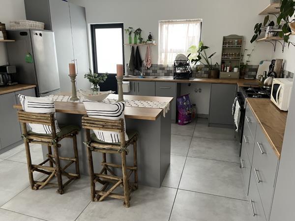 Modern Vredenburg Home: Stylish Living, Smart Features.<br />Discover modern living in this stylish 2-bedroom home with a study, ideally situated in a sought after neighbourhood with endless views over Vredenburg. The property immediately impresses with its contemporary architectural design, featuring light grey walls, a dark corrugated roof, and a high privacy wall ensuring seclusion. The front garden boasts low-maintenance, water-wise landscaping with gravel, vibrant purple flowering plants, and succulents, enhancing its kerb appeal. A large black garage door and a separate wooden pedestrian gate lead to a neatly paved driveway, complemented by decorative wooden pergola beams. Step inside to an inviting open-plan layout, characterized by clean, light-colored tiled flooring throughout.<br />The modern kitchen is a focal point, equipped with sleek grey cabinetry, light wood-look countertops, and a practical breakfast bar island. There is a separeate dining room area for extended entertainment. The living space features a striking two-tone wall design, offering a comfortable area for relaxation and entertaining. The home offers two bedrooms with a study. The main bedroom has built-in wardrobes boasting an opulent en-suite with a bath, toilet, basin and shower. The other bedroom reflect the home''s contemporary aesthetic. The guest toilet and shower are finished with a clean, modern touch.<br />Double electric garage and extra parking for two more cars in the driveway. Outside, the 645 sqm erf provides space for outdoor enjoyment, complemented by an irrigation system for easy garden care. Residents can also enjoy a communal braai area, ideal for social gatherings. For peace of mind, the property is equipped with an alarm system. Special features are two gas geysers, and for the eco-conscious a battery inverter with 5 solar panels, ensuring energy efficiency and backup power. Pets are allowed, making this a perfect contemporary home. Vredenburg offers a welcoming suburban environment, providing convenient access to local amenities and a relaxed lifestyle on the West Coast.<br />Key Features:<br />2 Bedrooms, 2 Bathrooms<br />Modern Open-Plan Living<br />Sleek Grey Kitchen with Island<br />2 Garages andamp Paved Driveway<br />Alarm System andamp Battery Inverter<br />Gas Geyser andamp Irrigation System<br />Patio with Built-in Braai Area<br />Pet-Friendly<br />365 DAYS PROPERTY INVESTMENTS CC trading as REMAX 1st Realty Saldanha operates in terms of a franchise agreement with REMAX of Southern Africa.<br />