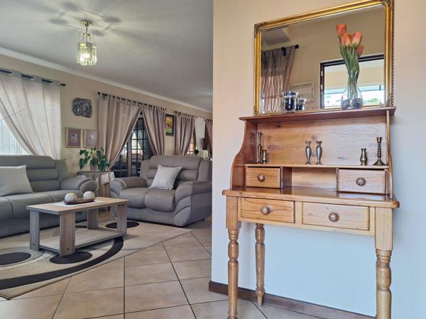 Family home in a security estate. Pam Golding exclusively presents you this family home. Move in ready and you can buy over some of the furniture, this home awaits a new ower. The home is located in a security estate, and the boundary wall of the complex has electric fencing. The home has cctv cameras and an alarm system.<br />The main bedroom is large enough, to fit a private lounge suite, and boasts with a walk-in wardrobe and full bathroom. The second bedroom has an ensuite bathroom, and the two remaining bedrooms, share a full bathroom. Downstairs, the space continues. Can you image your family in this large open-plan area...The scullery is the dream of any mom, hiding dishes and a space for the laundary to be handeled. The manicured garden, welcomes children and pets, and has a enclosed built-in braai for the rainy days. The back yard, is neatly paved and home tho the watertank and wendy house. Bring the help with, as there is staff accomodation.<br />