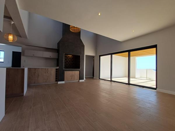 Coastal Residence with Panoramic Ocean Views<br />Presenting a contemporary residential offering in the esteemed St Helena Views, St Helena Bay, this newly constructed property epitomises modern coastal living. Spanning a generous 196.77 sqm of floor area on a 466.70 sqm erf, the residence features a striking white exterior with a gabled roof and black accents, exuding sophisticated kerb appeal. The interior boasts an expansive open-plan design, seamlessly integrating the living, dining, and kitchen areas, all adorned with elegant wood-look tiled flooring and high ceilings. The state-of-the-art kitchen is equipped with two-toned cabinetry, a substantial central island, and new stainless steel appliances, providing both functionality and aesthetic appeal. A prominent built-in braai, complete with integrated cabinetry, enhances the entertainment capabilities of the main living space, which extends effortlessly to a patio offering panoramic sea views.<br />The residence comprises three well-appointed bedrooms and one full bathroom, complemented by an additional en-suite bathroom, ensuring comfort and privacy for all occupants. The design prioritises natural light and a fluid living experience, ideal for a holiday home or permanent coastal residence. A dedicated utility room or scullery provides practical support to the main kitchen.<br />Externally, the property features a paved driveway leading to an integrated single garage, alongside additional parking. Sustainability is addressed with the inclusion of solar panels, contributing to energy efficiency. Security is paramount, with an alarm system, access gate, security gate, and 24-hour security within this secure complex, offering peace of mind. The property is pet-friendly and includes a garden, though landscaping is awaiting personalisation.<br />Situated in a coastal and eco-estate environment, this home offers a tranquil country living experience with the allure of aquatic activities and scenic sea views. St Helena Views provides an idyllic setting for those seeking a refined lifestyle by the ocean.<br />Key Features:<br />Modern Open-Plan Living Areas<br />Three Bedrooms, Two Bathrooms One En-suite<br />Contemporary Kitchen with Island and New Appliances<br />Integrated Built-in Braai and Entertainment Space<br />Patio with Expansive Sea Views<br />Single Garage and Additional Parking<br />Solar Panels for Enhanced Efficiency<br />Comprehensive Security Features Alarm, Access Gate, 24-hour Security<br />Pet-Friendly with Garden<br />Coastal Eco-Estate Location<br />366 DAYS PROPERTY INVESTMENTS CC trading as REMAX 1st Realty St Helena Bay operates in terms of a franchise agreement with REMAX of Southern Africa.<br />