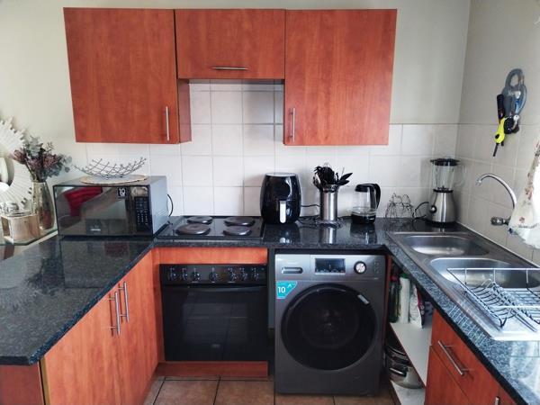 Open plan lounge with kitchen, 2 bedrooms, 1 full bathroom. Private Patio and 1 lock-up garage.
