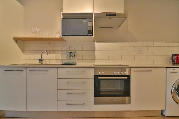 The modern kitchen is both stylish and highly functional, fitted with premium appliances including a stovetop, oven, and extractor fan. With space for three appliances, its perfectly suited for effortless everyday living and easy entertaining. The open-plan design flows seamlessly into a comfortable lounge and dining area, while the sleeping space is generously sized, complete with ample built-in cupboards and room for a king-size bed.