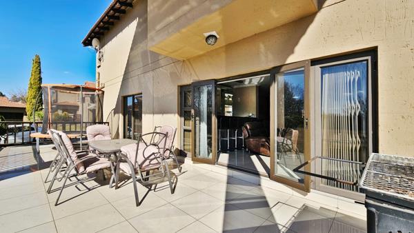 It features a double automated garage with a double carport, and a large patio off the living areas. Accommodation is arranged over two floors, downstairs offering a beautifully fitted contemporary kitchen with a separate scullery that is open plan to vast living space with a fitted bar that leads off to the patio via stack-away alluminium doors, and a separate kids playroom or additional fourth bedroom with a full bathroom.