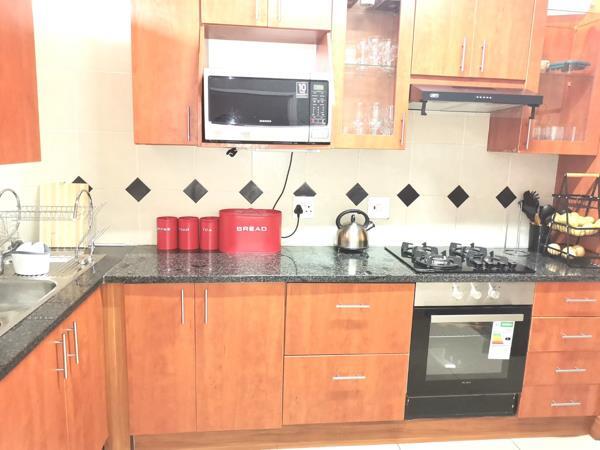 A stylish, fully fitted kitchen with tiled floors and ample cupboards