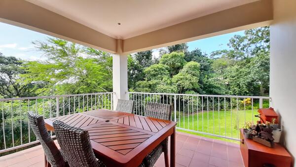 The home enjoys a peaceful outlook and a sense of space that immediately sets it apart. The open-plan living area is light-filled and well-balanced, centred around a well-designed kitchen with a central island and gas hob. From here, the space extends effortlessly onto a covered balcony, creating an easy indoor-outdoor flow ideal for both everyday living and relaxed entertaining.