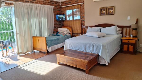 This exceptional 4 Bedroom semi or unfurnished home in Bluewater Bay offers 4 large bedrooms, 2 bathrooms, formal lounge, dining room, TV room, undercover braai room and a sparkling pool. Solar allows one to be partially off grid and with a double garage and double carport, this home near the beach and in a quiet street, finished off with exceptional security in terms of electric fencing, outdoor beams, alarm system and CCTV , is a must see.