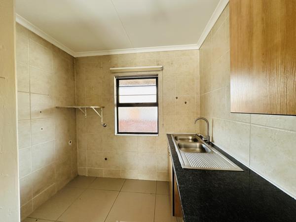 This modern and well-presented first-floor apartment within a neat and well-maintained complex boasts 2 generously sized bedrooms and a full bathroom. The modern kitchen is open-plan to the lounge, creating a bright and inviting living space. It is finished with granite countertops, a breakfast nook, provision for a gas stove, and space for a washing machine, dishwasher, and double-door fridge.