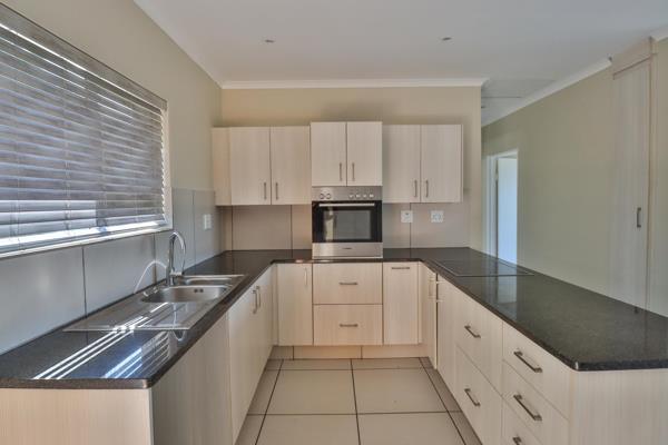 Beautiful open plan lounge and kitchen with granite tops. Eye level oven and glass hob with lots of cupboard space.