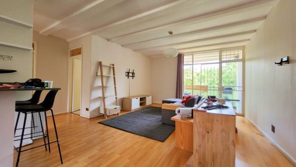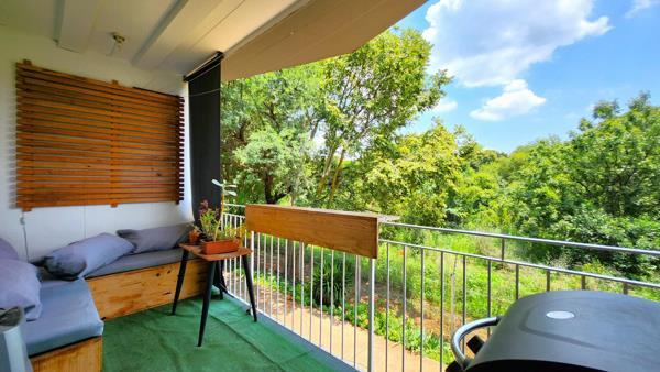 This inviting 92 sqm 2 bedroom apartment in Lynnwood Glen, Pretoria, offers a harmonious blend of modern living and natural tranquility. The open-plan layout features a bright lounge area with charming exposed beam ceilings and elegant hardwood flooring, creating a warm and welcoming atmosphere. Large windows flood the space with natural light and provide seamless access to a private balcony, perfect for enjoying the scenic green views. The contemporary kitchen boasts glossy white cabinetry, ample counter space, and integrated appliances, making it both functional and stylish for everyday living.