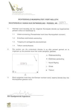 The 956 m2 erf is fully-serviced with quality paved roads, electricity supply, and water reticulation. KaiKai is equipped with an entire sewerage network for future implementation. All residential properties in Port Nolloth are required to have a sewerage pit or suitable underground tank to be regularly emptied by the Richtersveld Municipality.