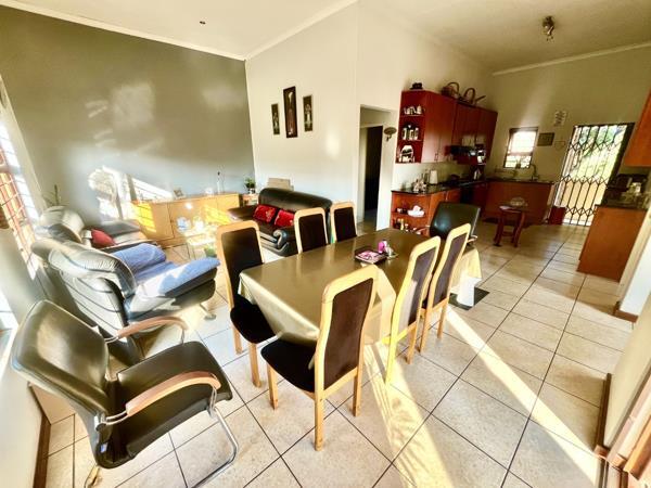 Step inside to a spacious open-plan layout, where the lounge and dining areas flow seamlessly, creating a warm and inviting space for both everyday living and entertaining. The modern kitchen is thoughtfully designed with ample cupboard space, a breakfast nook, and a separate scullery and laundry area for added practicality.