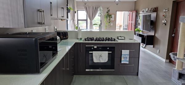 This lovely cluster home is waiting for its new family to move in. This lovely home has 3 bedrooms, all with built-in cupboards and tiled flooring. The main bedroom has its own En-Suite for comfort and privacy. The Main Bedroom has a bay window for some me time, sitting there in the sun, and just enjoying your own company. With the pajama lounge also part of the Main bedroom, you will have the same comfort upstairs as downstairs. You also have space for a work-from-home office. Cupboard space is enough, and you will enjoy the space in your room. The other two rooms are also tiled and have built-in cupboards. You have an additional bathroom for the rest of the family to use.