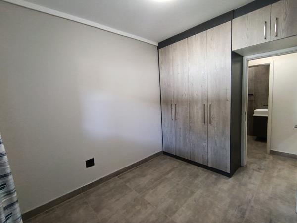 Step into a realm of refined living with this captivating two-bedroom, two-bathroom residence, gracefully nestled within a highly sought-after secure complex in the heart of Rynfield, Benoni. This meticulously designed unit, spanning a comfortable 59 square metres, offers an unparalleled blend of modern sophistication and tranquil comfort, perfect for the discerning individual or couple.