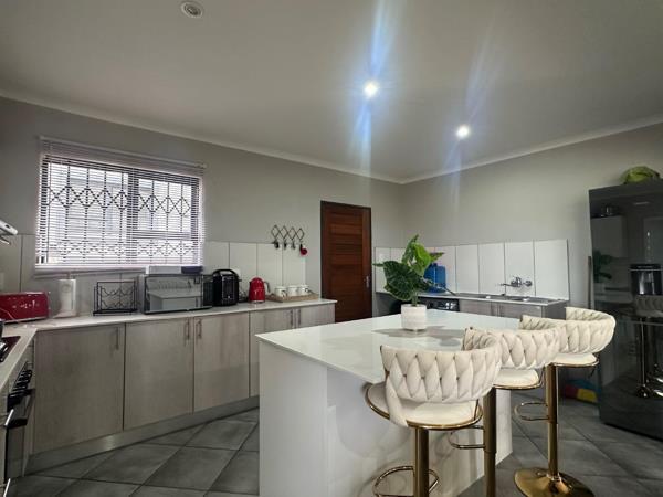 Upon entering the home, you are greeted by elegant tiled floors and a modern, high-quality open-plan kitchen featuring quartz countertops and a breakfast island.