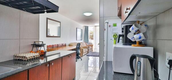 As you step inside, you''ll find two generously sized bedrooms with built-in cupboards, offering ample storage. The full bathroom features a bath/shower combo, complemented by a separate guest toilet for added convenience. The open-plan lounge and dining area create a relaxed, inviting space that flows seamlessly into a modern granite-top kitchen equipped with ample cupboard space, an extractor fan, hob, and under-counter ovenperfect for preparing family meals or entertaining friends.