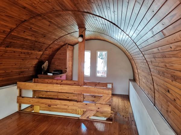 Loft Bedroom: Upstairs, youll find a huge loft bedroom with elegant wooden floors and a view of the garden.