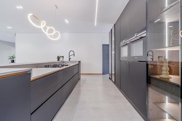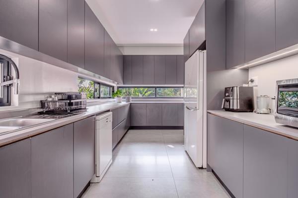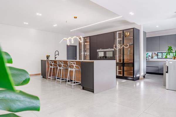 The lower level is dedicated to luxury entertainment and relaxation. Here you will find an impressive entertainment lounge complete with a stylish bar area, a separate cinema room for the ultimate movie experience, and an additional lounge that flows out to the outdoor entertainment spaces. The outdoor area is designed for memorable gatherings and relaxed estate living, featuring a sparkling swimming pool, jacuzzi, firepit, and a spacious braai area overlooking the lush greenbelt.