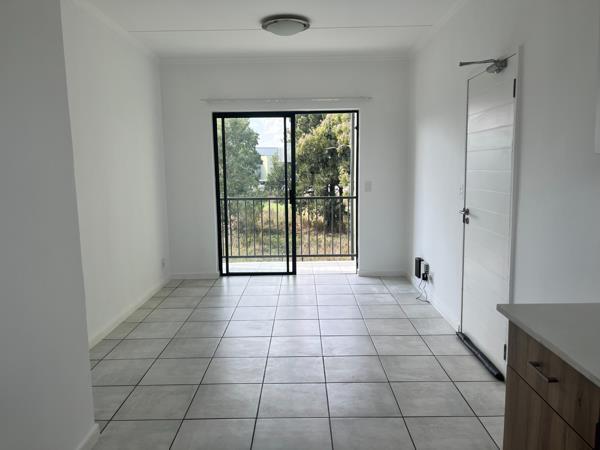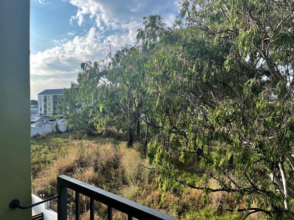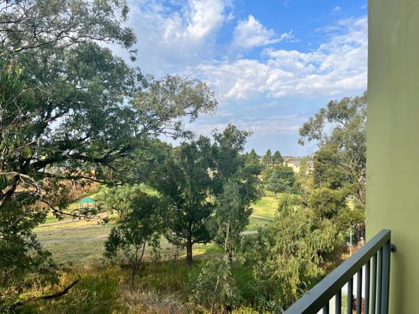 This wonderful, north-facing first floor apartment, offers the perfect lock up and go experience. Front door welcomes you into open plan kitchen presenting modern lighting, white Caesar stone counter tops, space for fridge and washing machine, Defy 600 hob, extractor fan and under counter oven and built in cupboards. Lounge is light and spacious with sliding door onto well-proportioned balcony enjoying expansive views over adjacent golf course. Main bedroom presents large picture window looking over the scenic golf course and decent cupboard space. Bathroom sports large glass encased shower, toilet and wall hung basin plus medicine cabinet. Second bedroom comes with built in cupboards and usb port plugs and windows with super views over the inner estate gardens.
