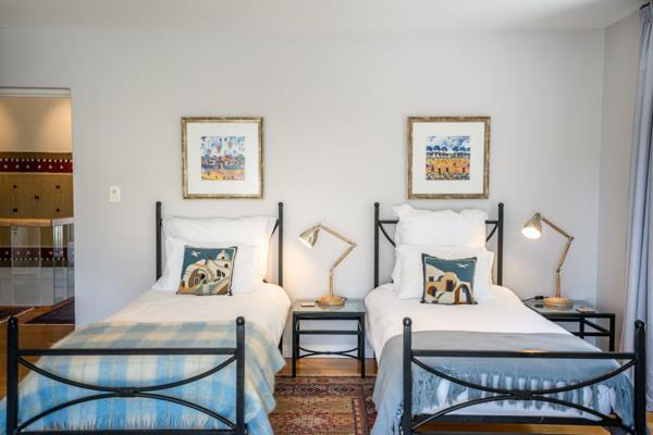 In addition to all this is a completely private flat which can be accessed either from the main house or has a separate entrance. The flat is huge and has open plan lounge, dining room, kitchen with granite tops. The bedroom is separate and has an enormous bathroom with double shower. As well is an entertainment room with a braai, leading onto a balcony with lovely views.