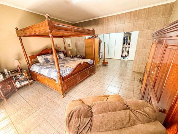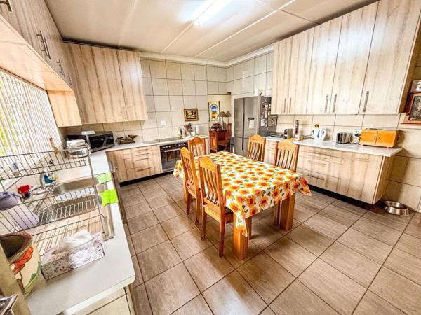 Exterior amenities and self-sustaining features underscore the property''s comprehensive appeal. The meticulously landscaped garden provides a serene backdrop for outdoor activities, complemented by a refreshing swimming pool, a traditional lapa, and a spacious patio, ideal for entertaining. The estate benefits from a solar geyser and a battery inverter, significantly reducing reliance on external utilities. Practical considerations are well-addressed with dedicated staff quarters, domestic rooms, a laundry facility, and ample storage solutions. Parking provisions are generous, including two secure garages and six additional open parking spaces. The property is further secured by burglar bars, a security gate, and an access gate, while a sprinkler system maintains the verdant surroundings. Scenic views and a pet-friendly environment complete the residential offering.