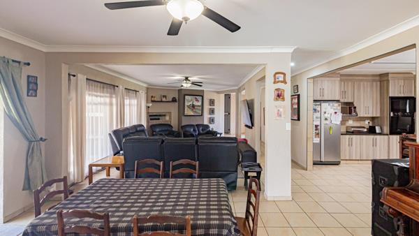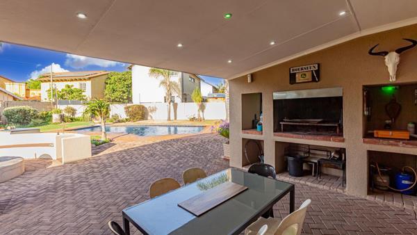 If you love entertaining, have an extended family or run your business from home, then this spacious four bedroom property with full solar is for you. Entering the property via one of the two automated perimeter gates, leading to two double garages one with an incredible toolroom workshop, and one single garage, with ample open parking for another six to eight cars on the property, you enter a whole lot of house. Four generously sized bedrooms, with BIC, easily fitting double beds and desks are securely cordoned off from an open plan lounge with fireplace, dining room and well fitted modern kitchen with two studiesoffices leading to the sides. Stepping out from the dining room you enter a large enclosed patio with built-in bar, before stepping outside to the covered, built-in braai area replete with fire pit and swimming pool to the side perfect for entertaining all year round.