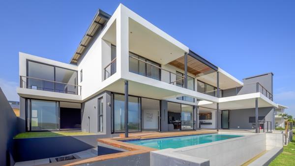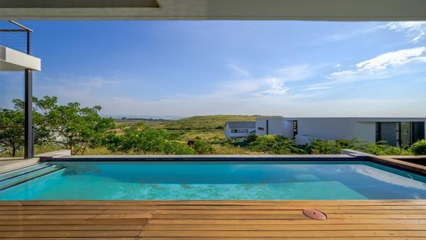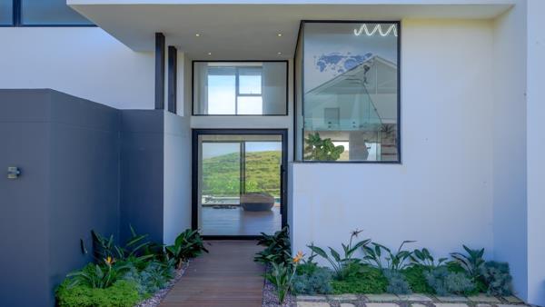 The homes designer kitchen forms the centrepiece of the living space and is fitted with high quality appliances. It flows effortlessly into the open plan lounge and dining areas, creating a bright and welcoming environment for everyday living. A separate scullery adds practicality and keeps the kitchen neat and organised. Large sliding doors lead out to a covered patio with a built in braai, overlooking the swimming pool, the perfect setting for entertaining while enjoying beautiful sunset views.