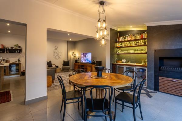 Positioned on a greenbelt, the home enjoys open, uninterrupted views from the patio, heated infinity pool, and boma. The outdoor space feels especially inviting in the evenings, where soft, well-placed lighting brings the pool and boma area to life and creates a relaxed atmosphere for entertaining or quiet nights at home. A built-in wash-up area adds convenience, while a JoJo tank is neatly hidden behind a gate at the back. An inverter is also in place for added peace of mind.