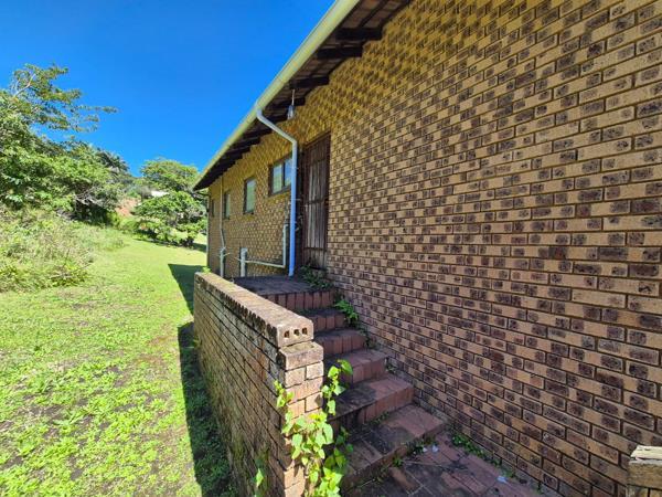 Built from low-maintenance face brick, the home features an open-plan living area that flows onto a sunny covered balcony overlooking the lush coastal forest. The compact kitchen provides the perfect base to expand and modernize to your taste.