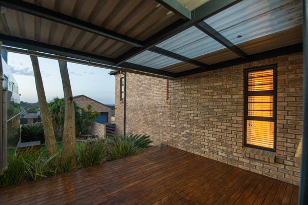 The main entrance leads up to the top tier, passing a landscaped garden area with artificial lawn and swimming pool. A further tier takes you to a covered patio deck with a built-in stainless steel braai ideal for entertaining. A water tank is installed along the side of the home for added convenience.