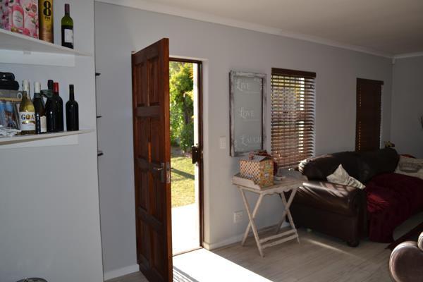 Spacious and well-laid-out living area with an open-plan kitchen. From the living area, a covered outside braai area.