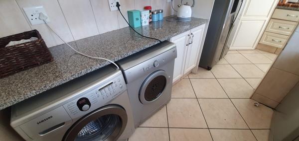 The heart of this home is its expansive modern kitchen, a true haven for any culinary enthusiast. With ample storage space and a separate scullery, it promises an organized and clutter-free cooking environment. Elegant tiled floors throughout the home add a touch of sophistication and ensure easy maintenance.