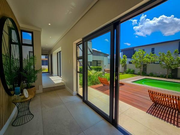 This stylish and modern 5-bedroom family home, located on a serene greenbelt, offers a perfect blend of luxury and functionality. Designed with an entertainers dream layout, it features spacious open-plan living areas that seamlessly flow to outdoor patios and a beautiful garden. Nestled in a sought-after security estate, this home provides both privacy and convenience, making it ideal for ultimate family living.