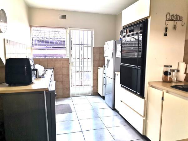 Experience easy living in this well kept townhouse set in Florida Park Roodepoort. The home offers a bright open plan dining and family room with tiled floors, flowing into a neat kitchen that features built in cupboards and a breakfast nook. There are three tiled bedrooms all with built in cupboards, and two bathrooms including an en suite in the main, ensuring comfortable, practical spaces for family life. A single covered garage and secure visitors parking add convenience, while the pet friendly policy is not in effect for this unit. The garden is maintained by garden services and the immaculate grounds create a welcoming exterior, and the communal gunite pool with fencing and auto cleaning equipment invites easy summer days and relaxed entertaining. Security is a clear plus with a security gate, burglar bars and 24 hour access. This residence also includes a charming outdoor area with braai opportunities and a covered patio that flows from the living spaces, ideal for alfresco meals and relaxed gatherings. Positioned within a secure complex, it is a practical option for families seeking a comfortable home that blends everyday utility with a warm, inviting atmosphere.