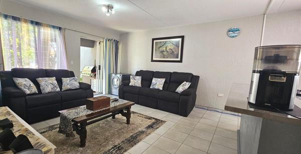 The inviting lounge area unfolds onto the ONLY completely private garden in the complex, offering an ideal retreat for relaxation or entertaining guests.