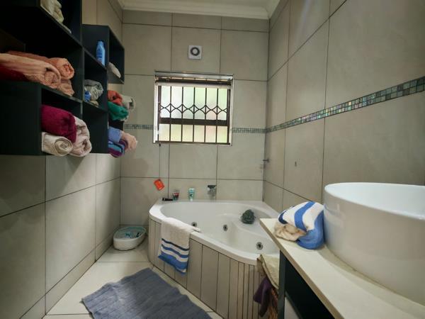 The exterior offers a double automated garage, fully walled perimeter, and electric fencing, ensuring peace of mind.