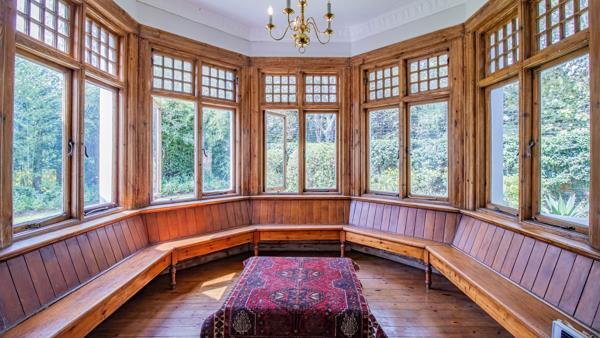 Every window is framed by authentic yellowwood panes, casting a golden glow across the generous living spaces.