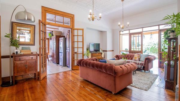 Period Elegance. The main home is a testament to timeless design, featuring soaring pressed ceilings and original wooden flooring that radiates warmth.