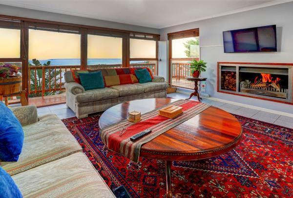 Designed to make the most of its surroundings, the upper level opens into a sun-filled, open-plan living space where the views are enjoyed from both the modern, well-equipped kitchen and the living areas. The seamless flow between the lounge, dining area and kitchen creates an easy, welcoming space for everyday living and entertaining. A fireplace adds warmth and comfort, while the adjoining balcony extends the living area outdoors perfect for morning coffee, relaxed evenings, and taking in the Mossel Bay lights.