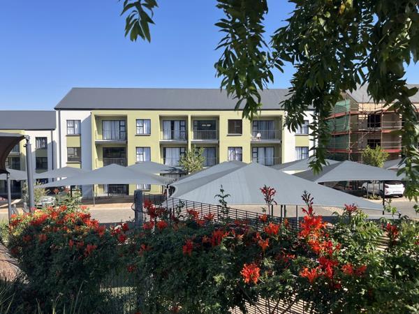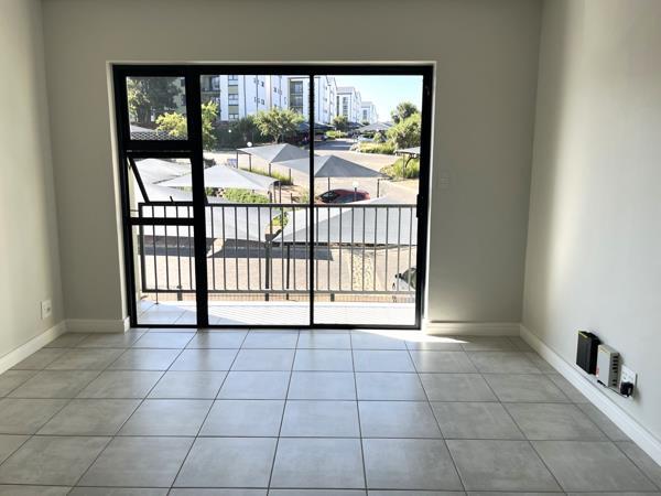 Beautiful north-east facing second floor apartment, offers top notch lock up and go experience. Close to the 6 star Lifestyle center, this apartment welcomes you into spacious open plan kitchen sporting modern lighting, includes white Caesar stone countertops, double sink, Defy 600 electric counter top hob, under counter oven, extractor fan, built in cupboards and space for under counter washing machine and fridge. Lounge is light basking in morning sunlight, with sliding door onto balcony. Bedroom enjoys large picture window, built in cupboards and wall plugs with usb ports. Bathroom delights presenting modern rectangular bath, glass encased shower, large medicine cabinet, toilet and wall hung basin.