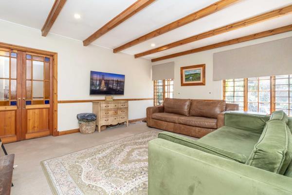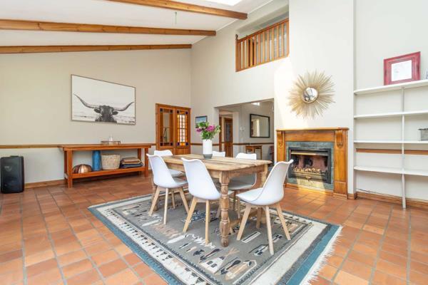 Welcome to your new home, a remarkably spacious and sun-drenched residence perfect for your family. This property offers an abundance of living space with two impressive lounge areas, boasting high ceilings and large windows that flood the rooms with natural light. One lounge features a cozy fireplace, while the other is air-conditioned for your comfort. The lounges seamlessly connect to the inviting entryway and lead to a separate dining room, offering ample space for a dining table and sideboards.