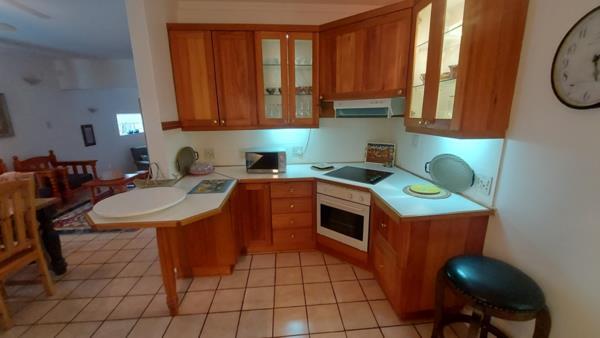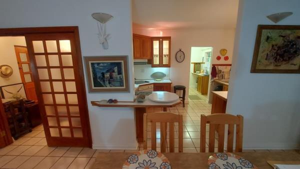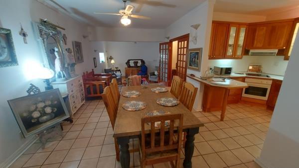 Outside the property features two storerooms and domestic accommodation. There are double, automated garages and ample paving for visitors and guests to park. The main access has an automated gate for convenience. The luscious, beautiful, garden is full under irrigation with a controlled system. An added safety feature is an alarm system, burglar bars and trellis doors at all access doors. A bonus is the large sunroom with double glass doors both sides with a view of the garden. Water won''t be an issue with a JoJo tank with back-up water.