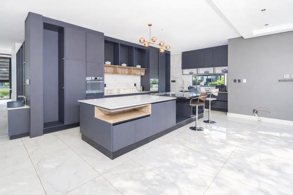 Upstairs, a relaxed pyjama lounge provides a comfortable retreat for the family, while four further en-suite bedrooms - each finished with its own distinct character and private balcony - complete the upper level. The main bedroom is in a class entirely its own. Two additional flexible spaces adjoin it, adaptable as a lounge, study, or personal sanctuary as the mood dictates. A walk-in dressing room of exceptional proportions, a beautifully appointed open-plan bathroom, and a sweeping balcony finished with a section of artificial lawn overlook the canal and the timeless silhouette of the Magaliesberg mountains. It is the kind of main bedroom that redefines what that space can be.