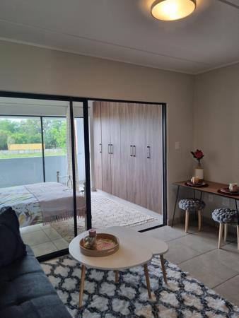 This unit features a private, open-plan layout. The bathroom fitted with a shower, basin and loo is neatly and separately situated as you enter the home. The L-shaped kitchen, finished with: granite tops, washing machine, fridge, stove, oven, extractor fan, tiled backsplash and a volume of light wood cupboard space lays open plan with the cosy lounge area. The bedroom, whilst just off the lounge is made private with sliding doors. The bedroom is well sized, has a multitude of built-in-wardrobes and opens onto your very own balcony overlooking the rest of the development.
