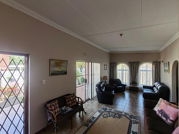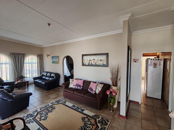 The kitchen is well-equipped with built-in cupboards, an eye-level oven, and an extractor fan, along with a separate laundry area that leads out to the backyard. For those cooler days, the indoor braai area provides a perfect space to relax and entertain guests.