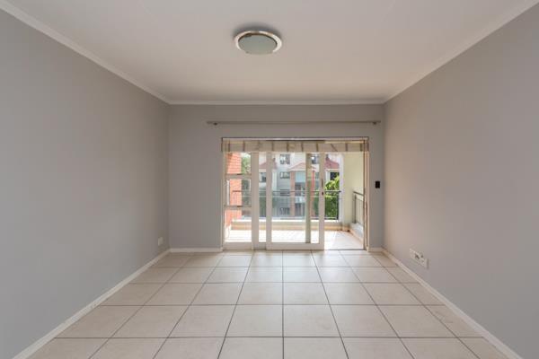 The living area extends effortlessly onto a spacious, covered balcony complete with a built-in braai, making it perfect for entertaining guests or simply unwinding while enjoying the elevated position and added privacy of a second-floor unit.