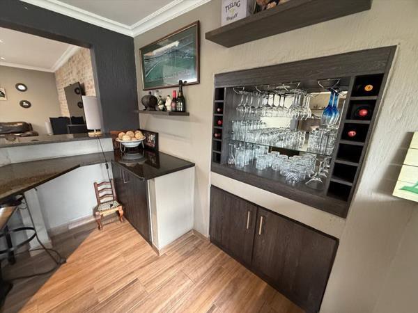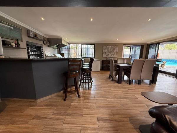 This beautifully maintained family home offers the perfect blend of comfort, style, and convenience, ideally situated within walking distance to schools and shops. The home features 3 spacious bedrooms with wood laminated floors and built-in cupboards. The main bedroom is a true retreat, complete with a private lounge area, air conditioning, and sliding doors that open onto a covered patio. The home is complemented by modern bathrooms, with the main en-suite offering a bath and the second bathroom also fitted with a bath.