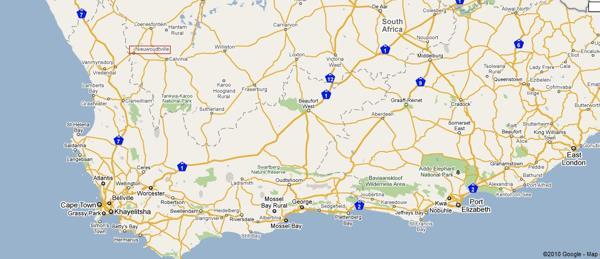 Nieuwoudtville is located in the Northern Cape, approximately 315 km north of Cape Town via the N7 and R27 through Vanrhynsdorp.