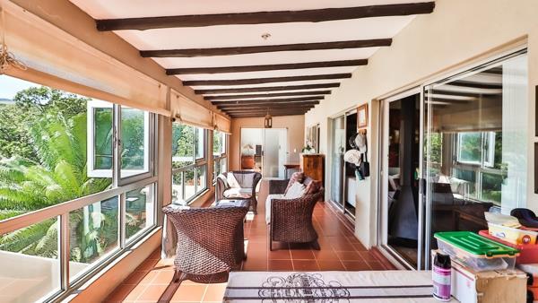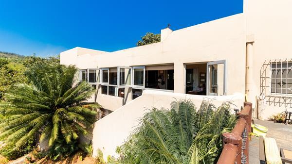 Living Space: Open plan dining and living area that opens onto a deck overlooking Da Gama Dam and beautifully maintained garden.