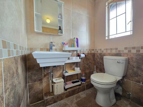 This well-maintained townhouse offers three spacious bedrooms, all fitted with built-in cupboards, providing ample storage for the whole family. The bathroom is neatly finished with modern touches and includes a bathtub, toilet, and basin.