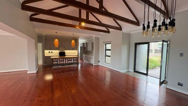 Each bedroom is a carefully curated haven with full-length built-in cupboards, and the bathrooms are sheer opulence with high-end plumbware and finishes. The incredible versatility of the property becomes even more apparent when you consider that one wing has been carefully adapted to function as a self-contained flat. Complete with a modern kitchen, lounge, bedroom and bathroom, the total amounts to four bedrooms and three bathrooms, ideal for an extended family, guests, generating an income, or providing a chic work-from-home suite.