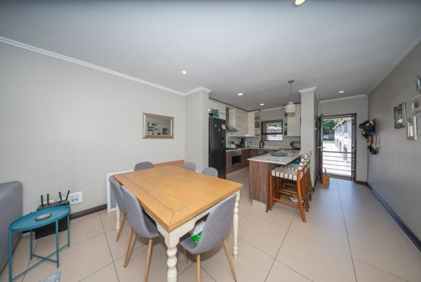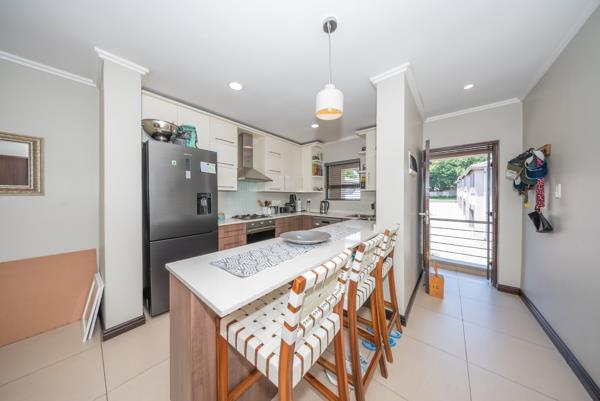 The living area extends effortlessly onto a sun filled covered balcony that becomes an extension of the home itself. Fitted with built in cupboards and a built in braai, this inviting outdoor space is perfect for morning coffee, quiet evenings or hosting friends in a setting that feels both private and elevated.